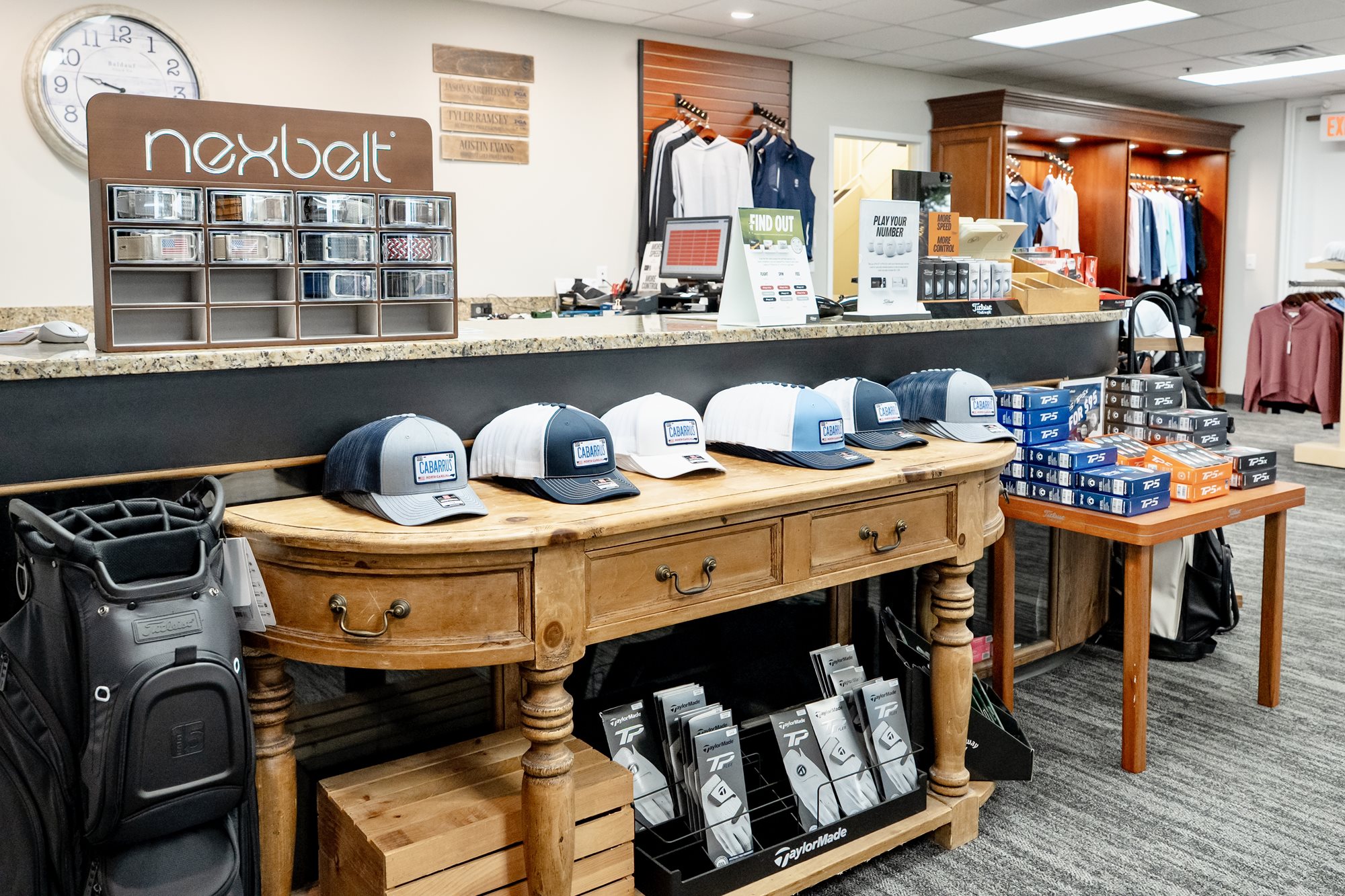 The Cabarrus Country Club Golf Pro Shop offers the latest and most popular brands in golf to help elevate your game and show your Cabarrus Country Club pride! We carry both men's and women's clothing, hats, balls, shoes, clubs, bags and more. Our staff is always available to help with your shopping decisions.